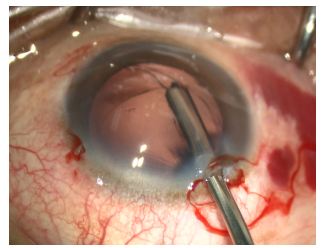 Figure 3-3 Intraoperative fixation of the lens with a temporary capsular hook