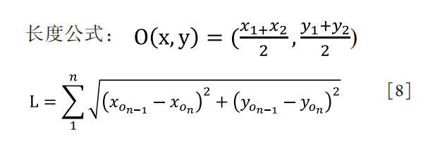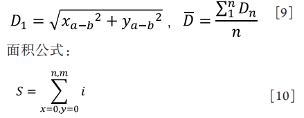 根据腺体的形态,可以计算腺体的长度、直径、面积、形变系数(deformation coefficient,DC)、显影值和中央腺体的腺体百分比6个生物参数。通过检测腺体的边缘,从上到下,每4个像素1个步进计算扫描腺体,计算腺体两边界点A,B的坐标。通过对点A,B的计算,计算出生物参数。计算公式如下: