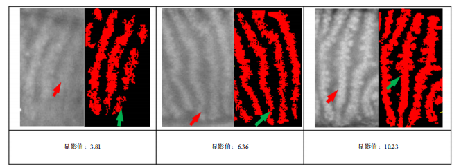 在实验过程中,由于部分测试者对翻眼睑的不适用,睑板腺图像位置不对,反光不均匀和眼睑暴露不完整,这会导致睑板腺图像导入系统后会提取不精准,小部分的干扰信息无法去除。另外当测试者睑板腺严重缺失的,由于缺失的大区域在光源照射下,偶尔会有不同程度的高反光,这会导致睑板腺图像导入后,系统会判断为腺体,属于无法去除的干扰项。以上两点还需要通过对图像算法的优化和提高,进一步提高系统对干扰项的处理能力,增加系统的精确度。