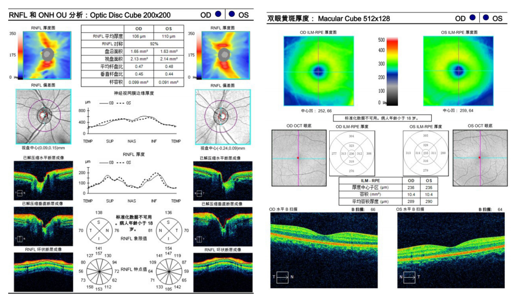 图 2 双眼视盘 + 黄斑区 OCT:未见明显异常
