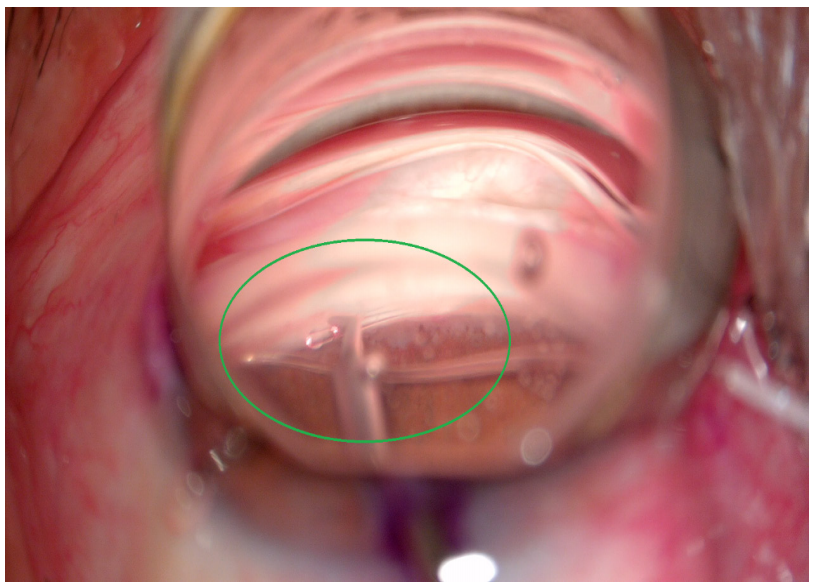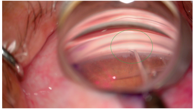 Figure 2 The tip of catheter is inserted into the Schlemm's canal through the goniotomy incision