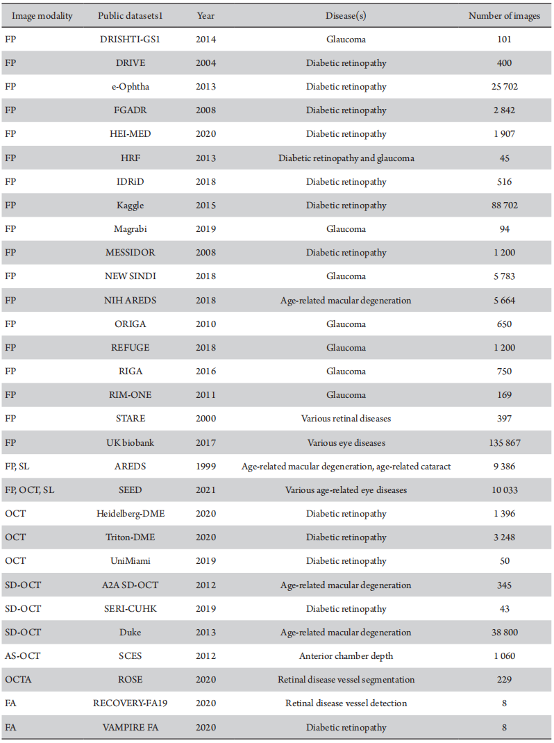 Table 3 Summary of the open access ophthalmological datasets used in deep learning studies