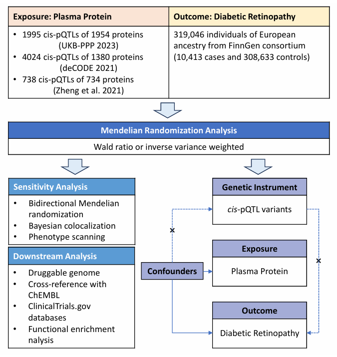 Genome-wide summary statistics for Cis-pQTL can be found in the original study,[9, 19-20] while GWAS summary statistics for DR are accessible via the FinnGen consortium website (R9 release) at https://www.finngen.fi/.