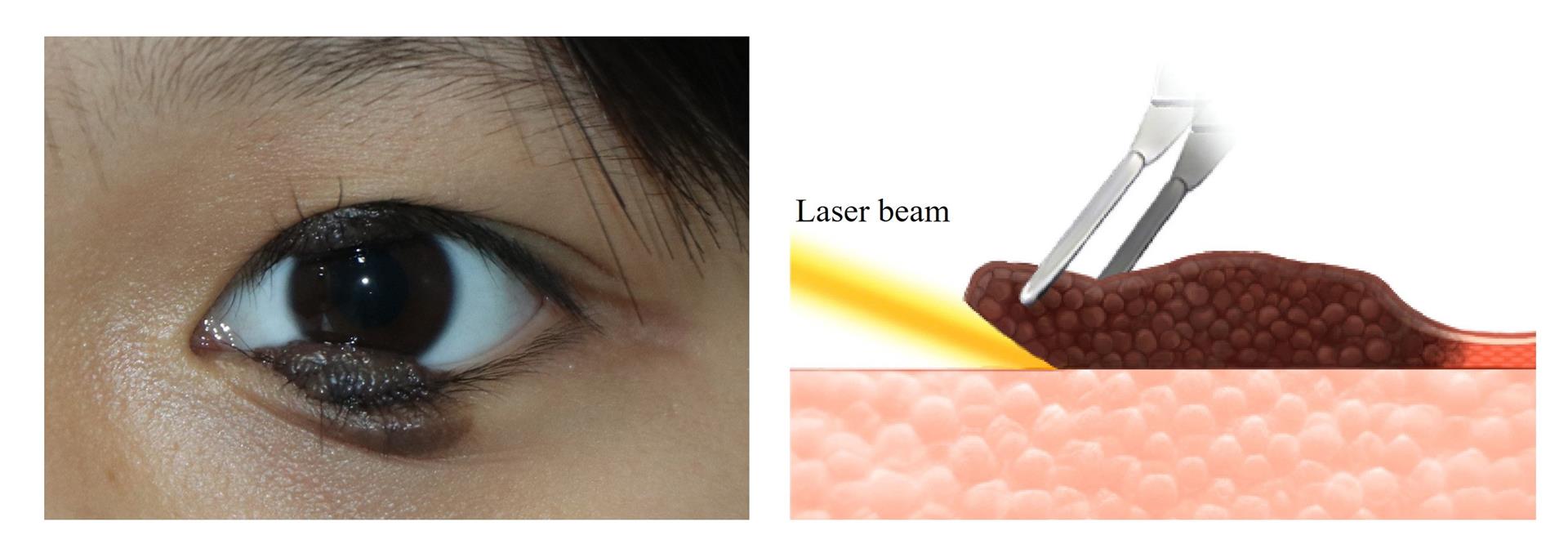 Figure 1 Laser excision technique for divided nevus of the eyelid