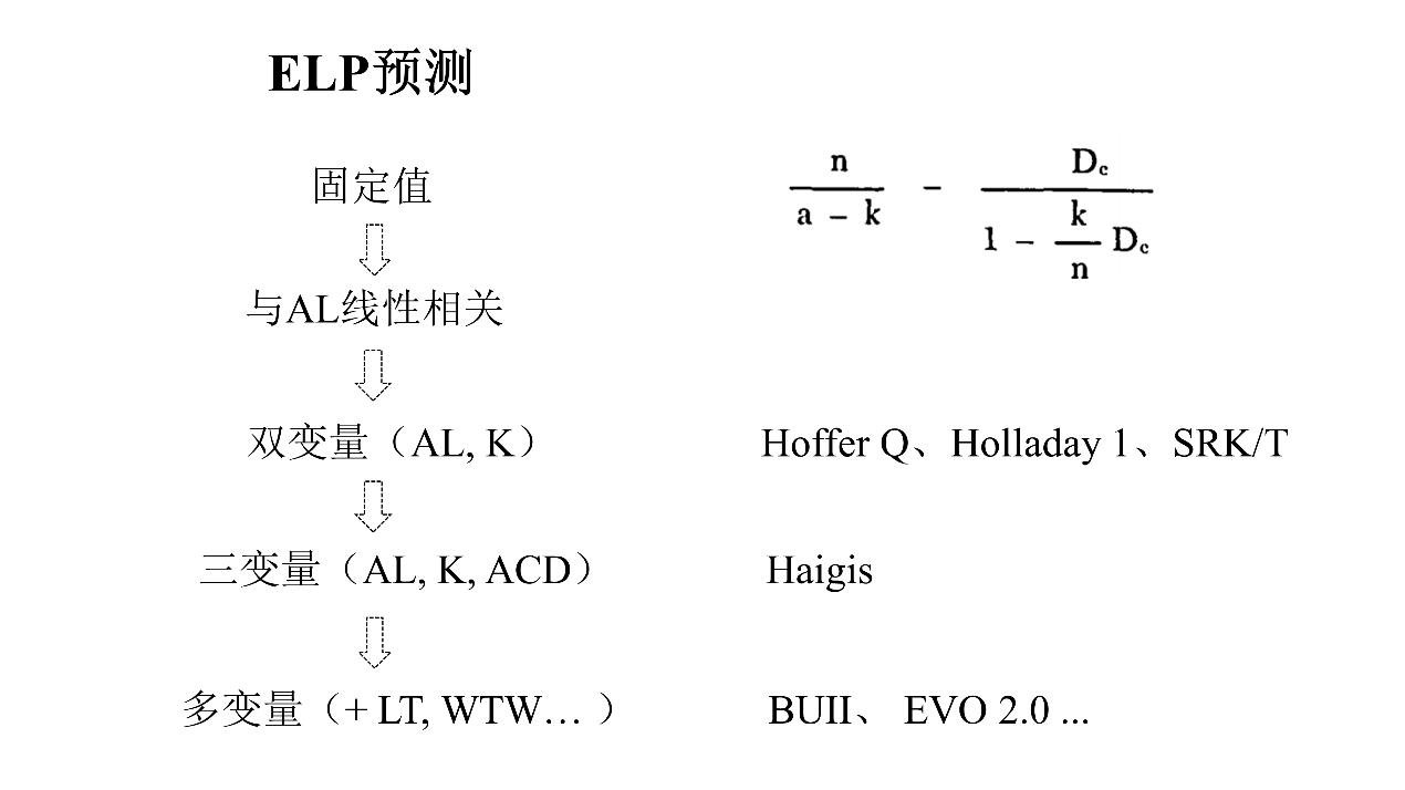 随着眼前节测量仪器的发展,可以更精准地测量和挖掘更多的眼球生物参数指标,公式可以利用越来越多的眼球生物参数来预测ELP,不断提高屈光力预测准确性。