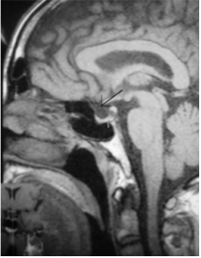 图 3 蝶鞍 MRI:垂体窝呈液型信号,垂体上缘受压凹陷,垂体变薄,信号均匀,垂体柄居中无增粗,视交叉显示无异常,鞍旁未见异常占位性病变。显示为空泡蝶鞍。
