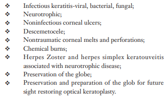 with severe ocular surface disease. Infectious keratitis, neurotrophic keratitis, nontraumatic corneal melts,