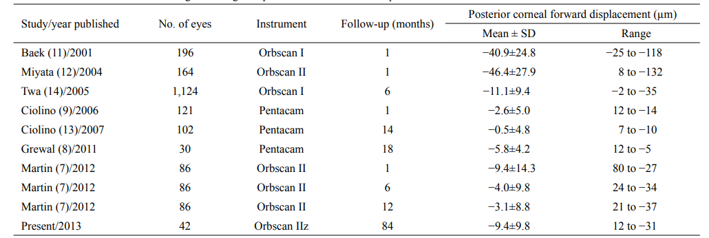 Table 4 Results of studies evaluating the changes in posterior corneal elevation post LASIK