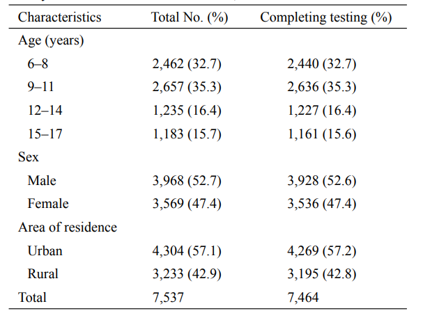 Methods: A total of 7,537 subjects from nine multi-layer primary and secondary schools participated in