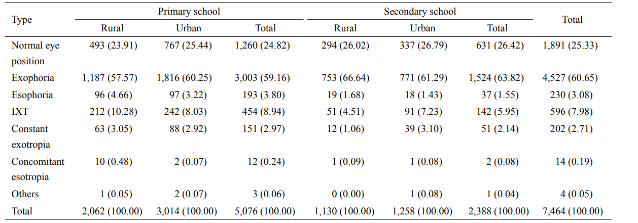 It should be noted that current survey also has certain limitations that the correlation between ametropia/corrected vision and eye position is not analyzed, which is helpful to explain the epidemiological distribution of IXT.