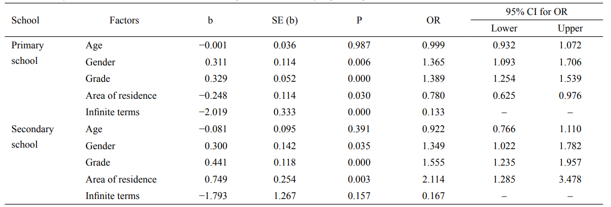 Table 4 Comparison on the prevalence of IXT in secondary students among different areas and grades from Shantou