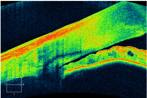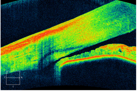 图1 急性闭角型青光眼LPI前OCT扫描房角图