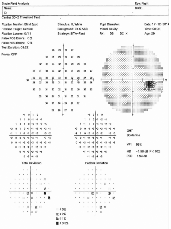 Figure 3 Humphrey visual field test report of the right eye