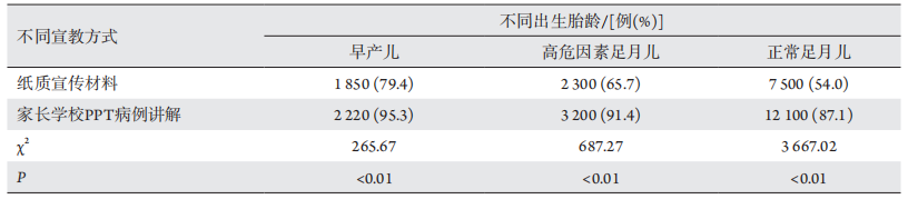 表 3 不同出生胎龄婴儿的家长对于眼保健检查方法的接受率