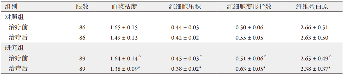Table 2 Comparison of blood rheology before and after treatment in 2 groups (x±s)