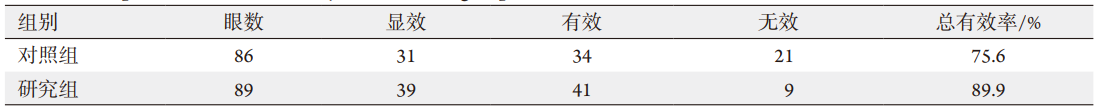 研究组总有效率89.9%,对照组75.6%,两组差