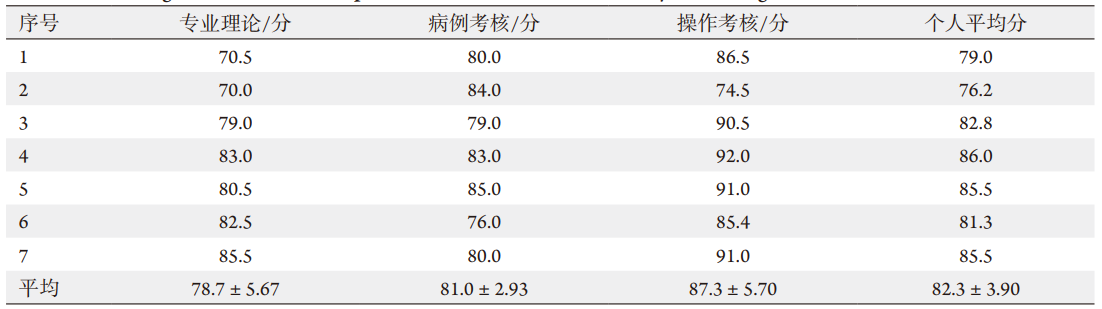 各考核项目满分为100分,及格线为70分;另有2名学员因执业医师资格考试未通过而未能参加结业考试。