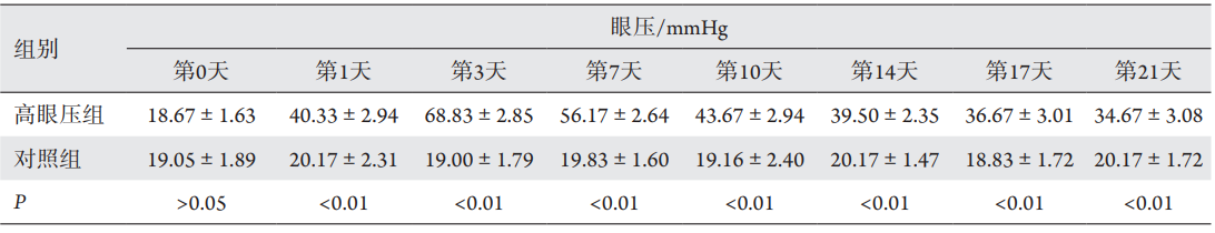 眼压升高1天时平均眼压为(40.33±2.94) mmHg