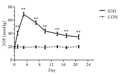 Table 1 IOP measurement between the intraocular hypertension (IOP) and the control group at different time points before and