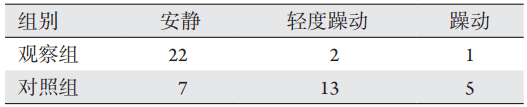 表 1 两组患儿复苏期躁动情况比较 (n=25)