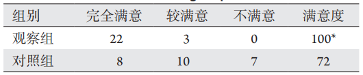 其中5例患儿躁动严重并出现静脉留置针脱落;观察组术后2例出现轻度躁动,1例较严重,术后血氧饱和度的变化不大(表1)。观察组患儿的护理满意度为100.00%,显著高于对照组的72.00%,差异有统计学意义(P<0.05,表2)。