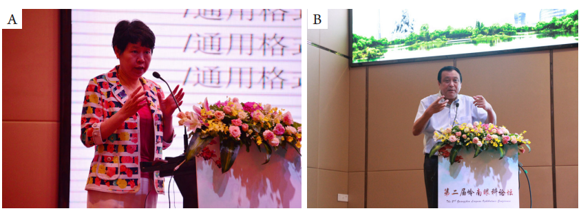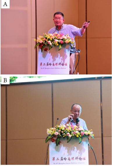 图5 (A)吴文灿教授、(B)林晓峰教授在大会上作演讲