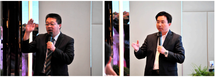 图4 (A)梁丹教授、(B)葛坚教授正在演讲