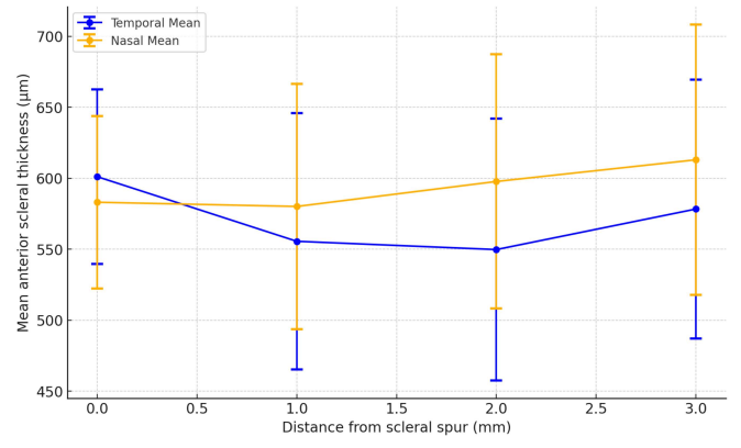 The impact of local therapies, such as intravitrealinjections and the use of prostaglandin analogues, cycloplegia on anterior scleral thickness further broadensthe clinical relevance of anterior scleral thicknessmeasurements. The observed thinning of the sclerafollowing repeated injections or chronic medication usesuggests that these interventions may have unintendedeffects on scleral integrity, which could influencetreatment outcomes, particularly in patients requiringlong-term therapy, This may remind clinicians to monitoranterior scleral thickness in patients undergoing suchtreatments to prevent adverse effects.