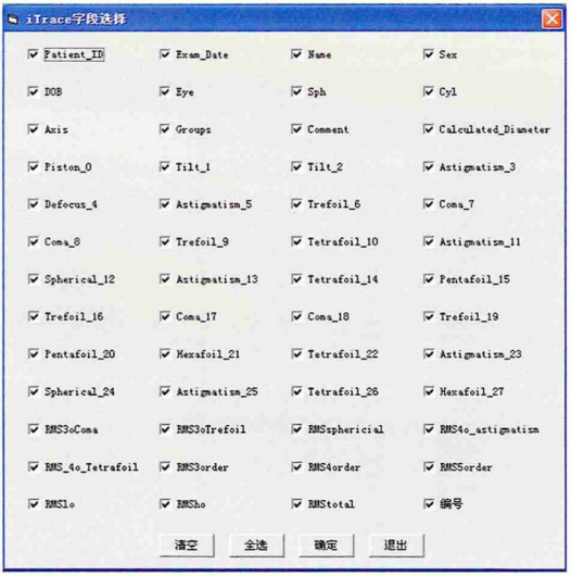 ACSH提取数据只需根据不同检查仪器选择对应的数据库路径即可(图1)。点击菜单iTrace,会弹出路径选择窗口,用户正确选择iTrace对应的数据库acritec.mdb所在路径后,ACSH就会对acritec.