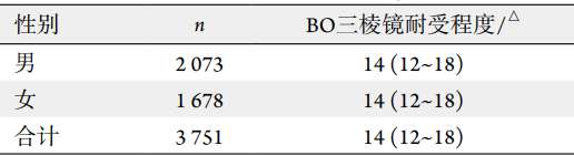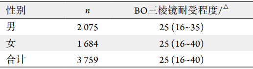 表5 性别间的BO三棱镜融像破裂点值比较(n=3 759)