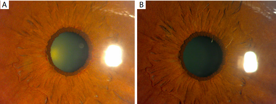 margin (Figure 1A). Mild nuclear sclerosis of lens was