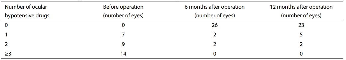 Table 3 The number of ocular hypotensive drugs used before and after operation (n=30)