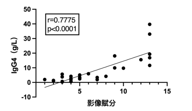 表 5 IgG4-ROD患者血清IgG4水平与影像学赋分的相关性分析